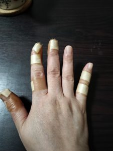 指が乾燥からひび割れだらけになってしまいました
