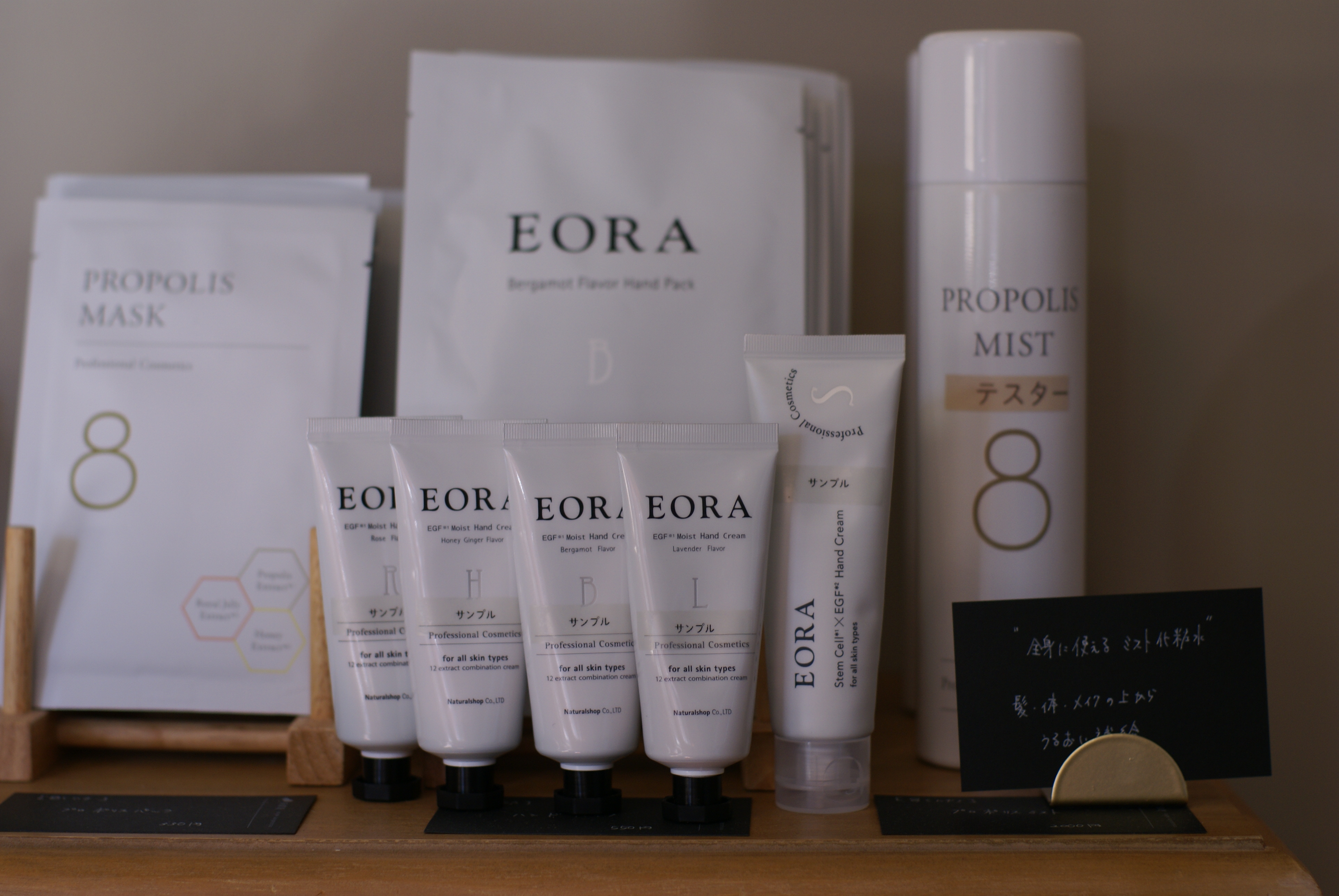 4種類の香りのハンドクリームと、無臭のハンドジェル