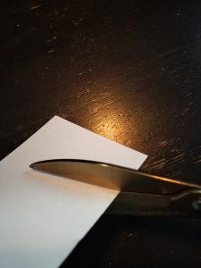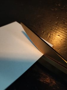 ハサミの直線部分を下にして紙を切ったのです!